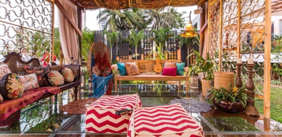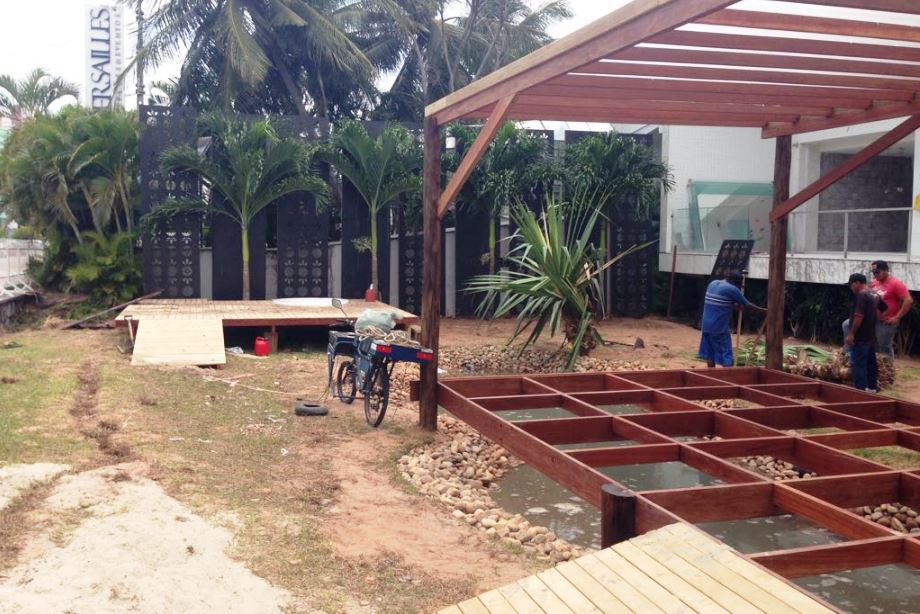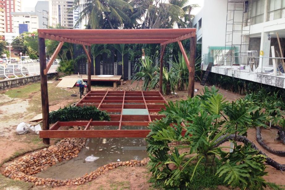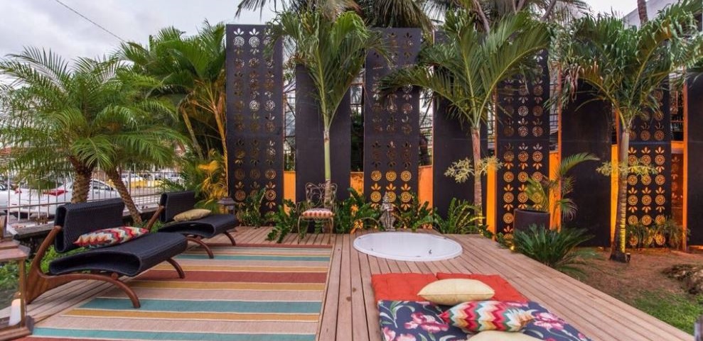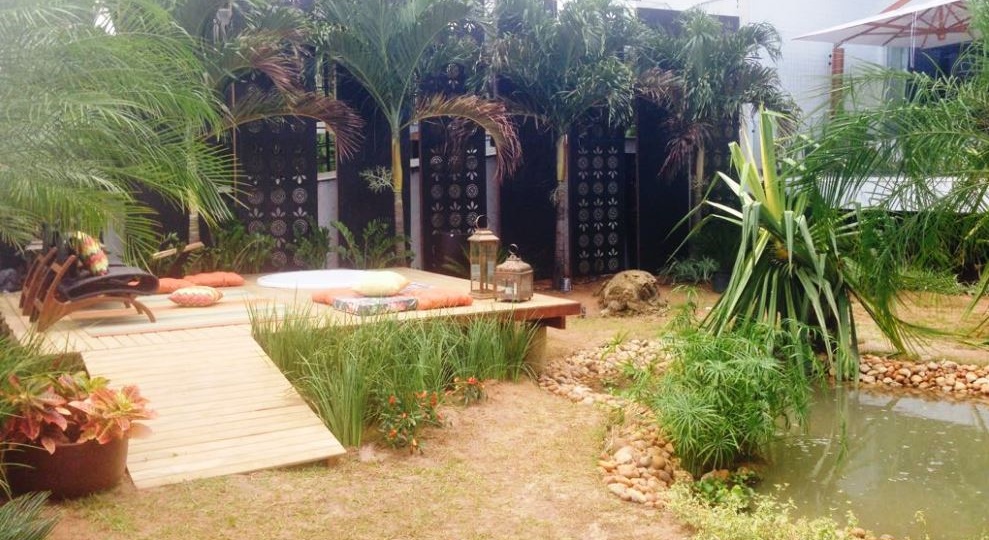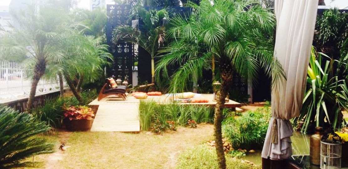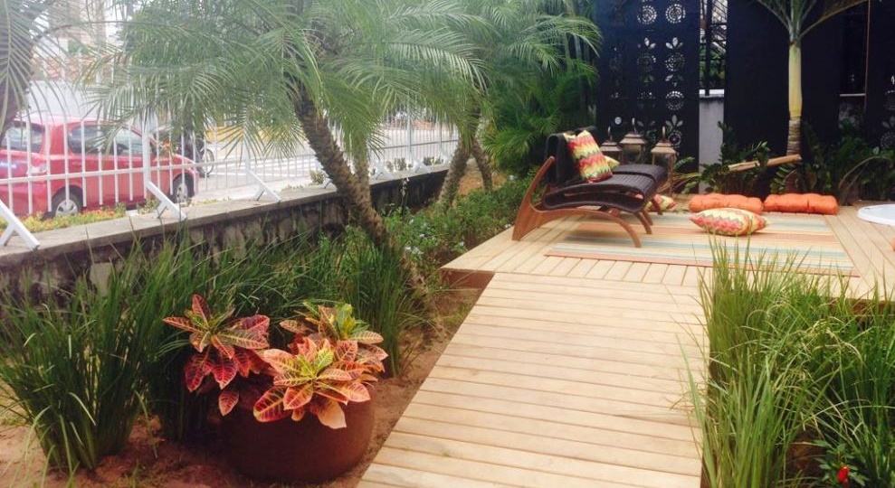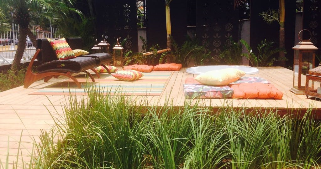 Boho Garden, um projeto desenvolvido especialmente para a Casa Cor 2014. Uma mistura de diferentes formas, cores, texturas integrados a um deck extremamente arrojado, de madeira, retilíneo, com piso em vidro sobre o lago de formas orgânicas, povoado por peixes ornamentais. Bem-estar, sofisticação e beleza se unem ao paisagismo arrojado, elegante e cheio de personalidade.